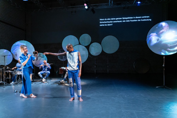 In MERGE, the musicians and performers become sound carriers who turn the stage into a sounding negotiation space: Who owns what and who belongs where? Who takes in whom, in himself as the foreign or as his own?